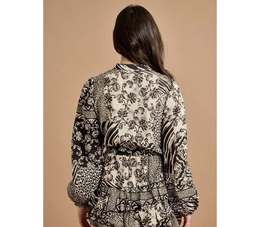 A chic romper with a flattering V-neckline, long sleeves, and a self-tie waist for the perfect fit. Finished with layered ruffle shorts that give it a playful, dress-like look while keeping it comfortable and versatile.