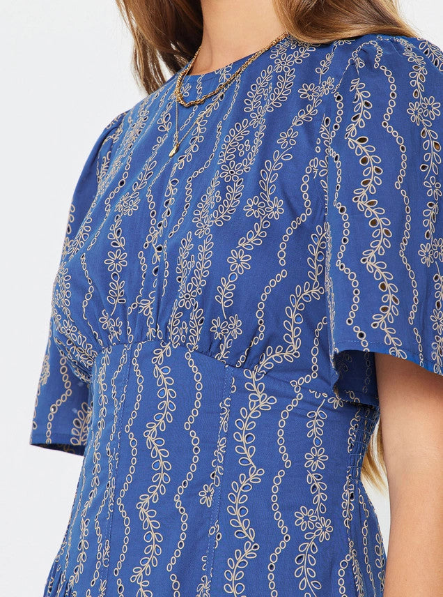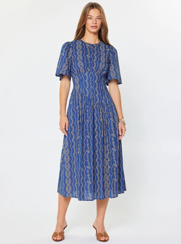 A pretty statement maxi with an easy, feminine feel. This eyelet embroidered dress features a boat neckline, flowy half sleeves, and a fitted smocked waist that gives shape while keeping it comfortable. The maxi-length skirt moves beautifully, and the back zipper closure keeps the fit polished and flattering. Perfect for brunches, showers, vacations, and any dressed-up daytime moment.
