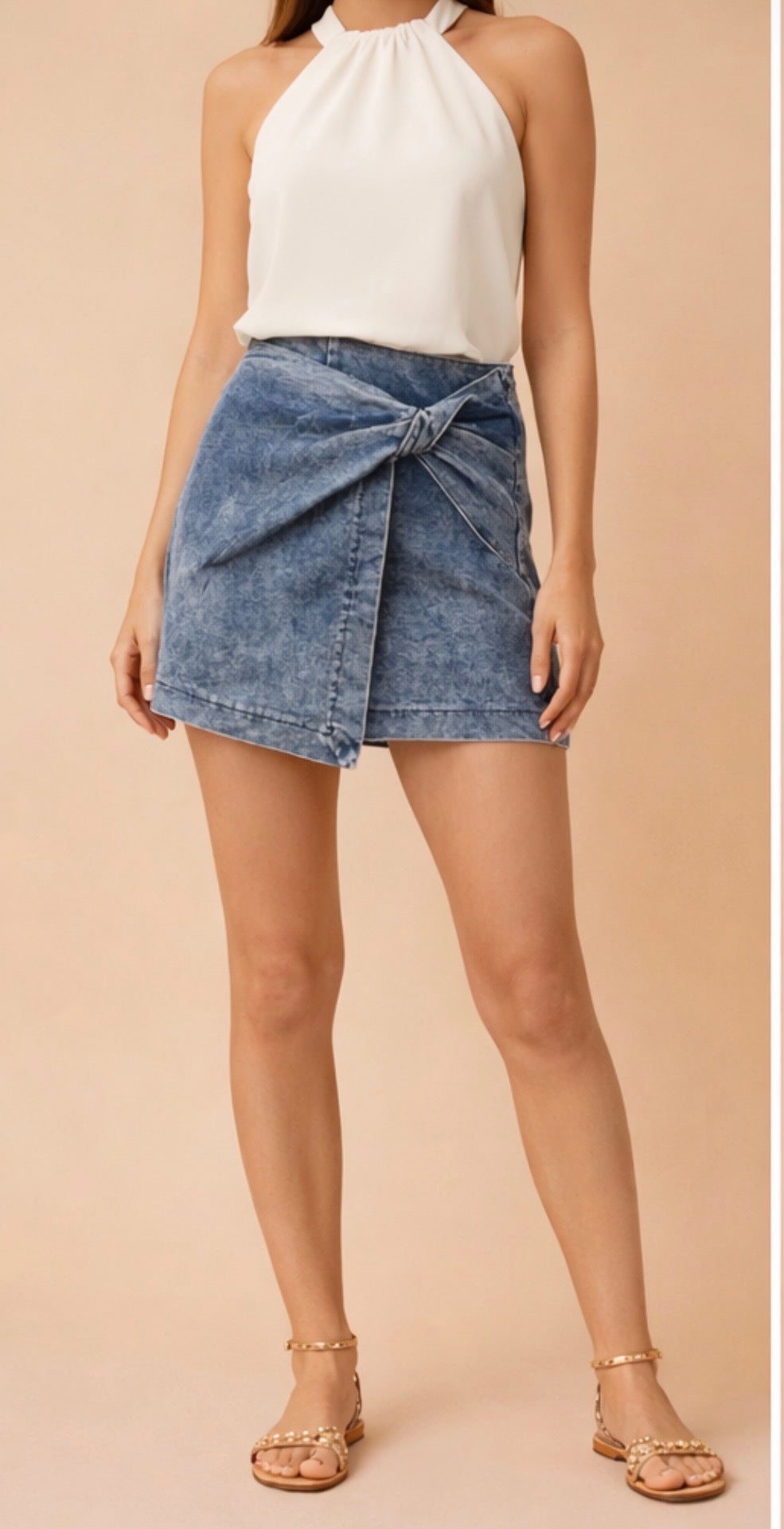 Loving our acid wash skort featuring front cover detail and back zipper closure. Great for summer days & chic nights. Pair with your favorite sandals or wedges for the perfect day to night outfit.