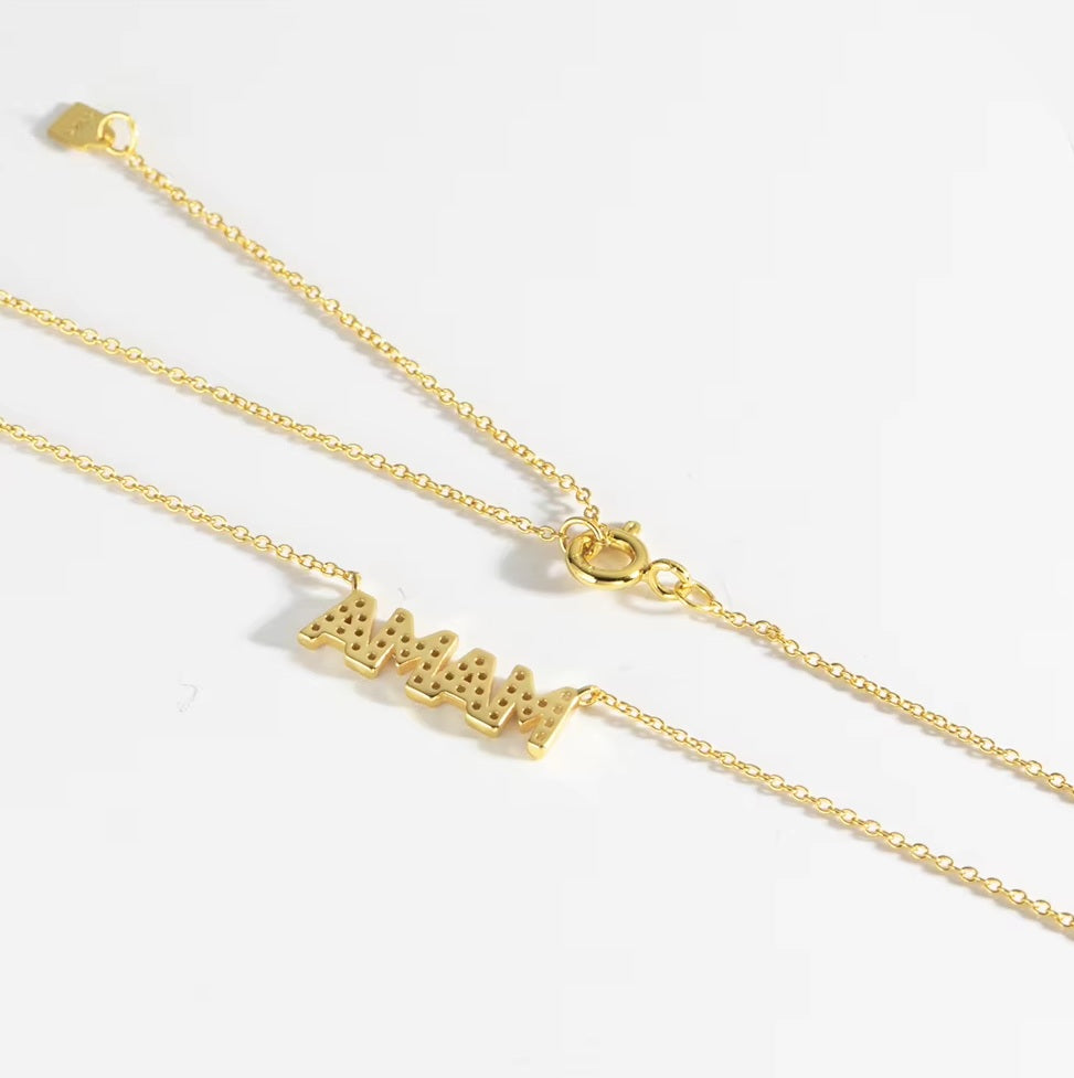 Pave Block Mama Necklace SM